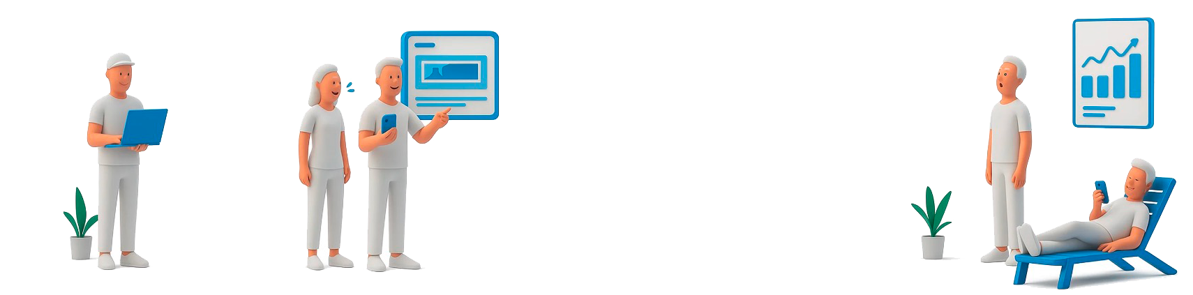 Nos IA analysent vos photos et vidéos pour créer et publier automatiquement des annonces immobilières en fonction des évènements, des promotions, de la saison et des trends sur les réseaux sociaux, optimisant ainsi votre visibilité et taux de remplissage.